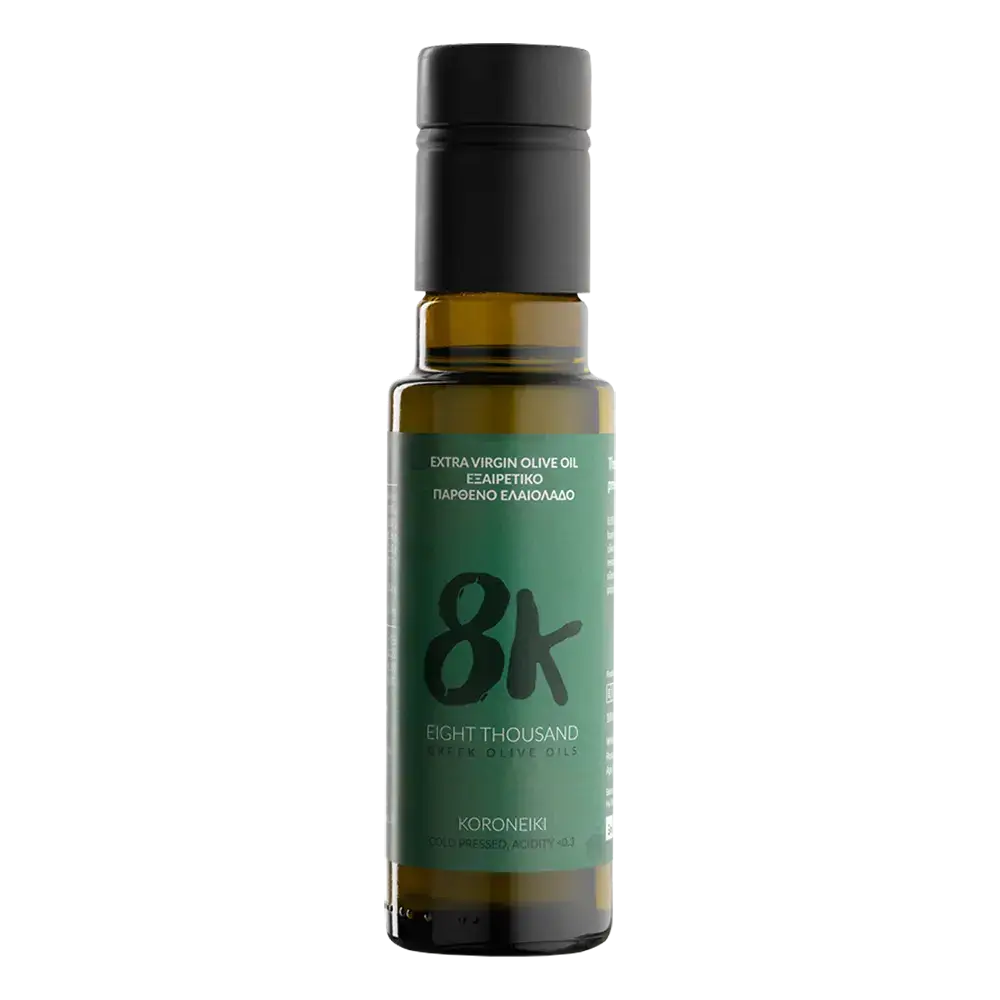 8K Olive Oil – 8K Koroneiki Premium EVOOThe company 8K, namely 8 thousand, acquired its name from the history of eight thousand years of existence of the olive tree in the Mediterranean region. It is a family business with a long tradition in olive growing and in the production of high quality organic extra virgin olive oil. The olive groves are located in the area of Monemvasia, in the region of Laconia in the south Peloponnese, at an altitude of 300 meters, in a semi-rocky landscape, with an ideal microclimate for the cultivation of olive trees.