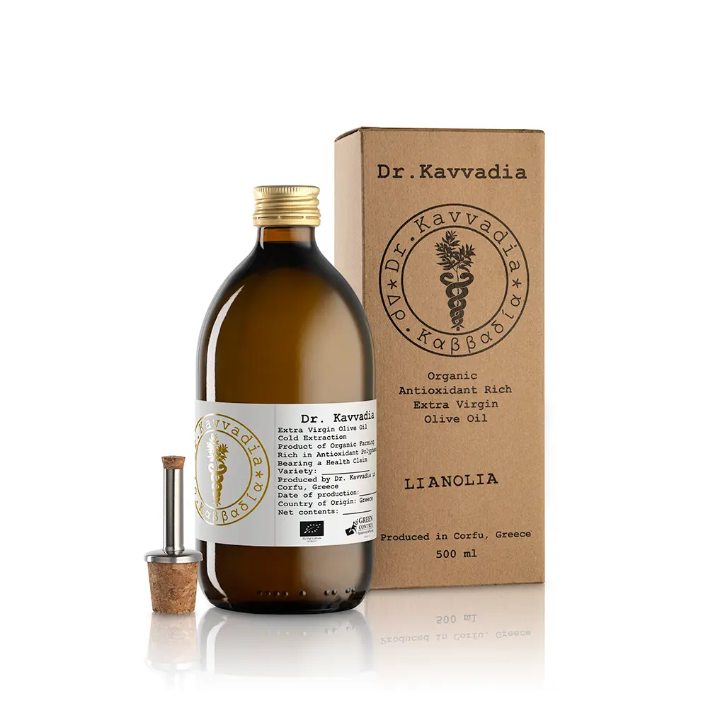 Το Dr. Kavvadia Organic EVOO είναι ένα βραβευμένο μονοποικιλιακό βιολογικό εξαιρετικό παρθένο ελαιόλαδο από την ποικιλία Λιανολιά. Το ιδιαίτερο μικροκλίμα, οι εδαφολογικές και υψομετρικές συνθήκες της περιοχής καθώς και η συνέπεια σε όλα τα στάδια παραγωγής μέχρι την τελική τυποποίηση, εξασφαλίζουν την υψηλή ποιότητα του τελικού προϊόντος χαρίζοντας του την πιστοποίηση για τον ισχυρισμό υγείας από την Ευρωπαϊκή Αρχή για την Ασφάλεια των Τροφίμων (EFSA).