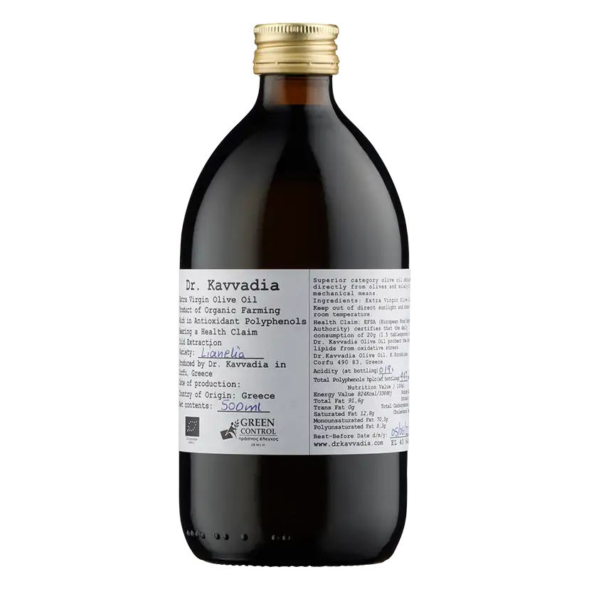 Το Dr. Kavvadia Organic EVOO είναι ένα βραβευμένο μονοποικιλιακό βιολογικό εξαιρετικό παρθένο ελαιόλαδο από την ποικιλία Λιανολιά. Το ιδιαίτερο μικροκλίμα, οι εδαφολογικές και υψομετρικές συνθήκες της περιοχής καθώς και η συνέπεια σε όλα τα στάδια παραγωγής μέχρι την τελική τυποποίηση, εξασφαλίζουν την υψηλή ποιότητα του τελικού προϊόντος χαρίζοντας του την πιστοποίηση για τον ισχυρισμό υγείας από την Ευρωπαϊκή Αρχή για την Ασφάλεια των Τροφίμων (EFSA).